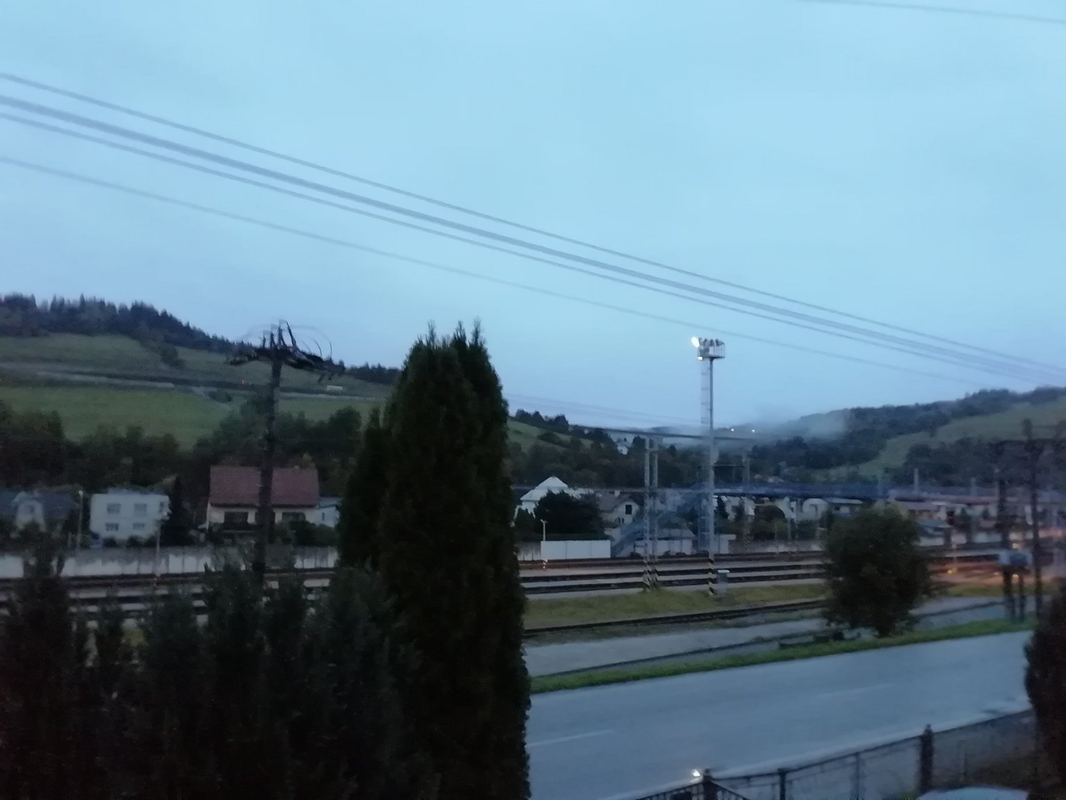 Skoro jasno, slabá mlha v pozadí, dnešní ráno ke nejchladnější od začátku dubna, při zemi už mrzne