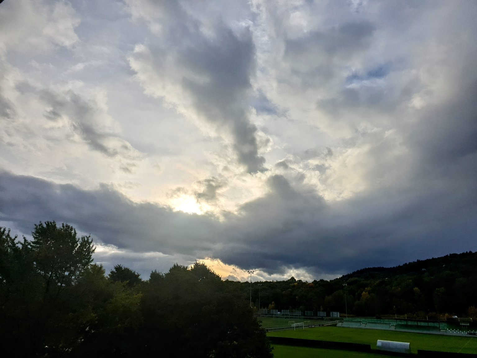 Zatím dnes beze srážek, tlak 1016,4 hPa, ZSZ vítr do 4 m/s.