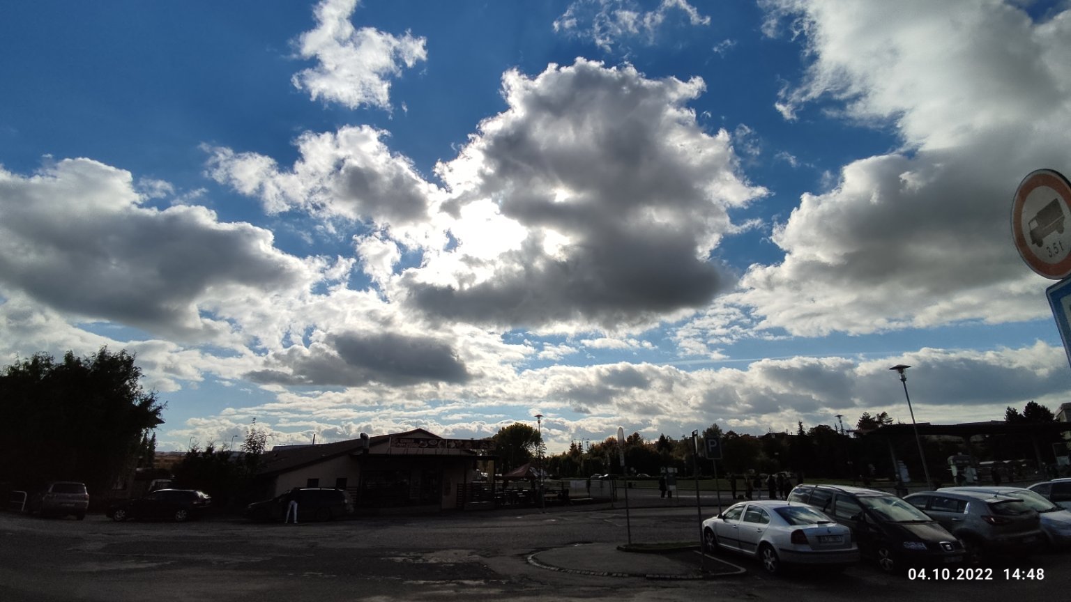 Skoro jasno 2/8, rozpad oblačnosti. Vítr 1,1 m/s proměnlivý. Vlhkost 52%. Tlak 1023hPa