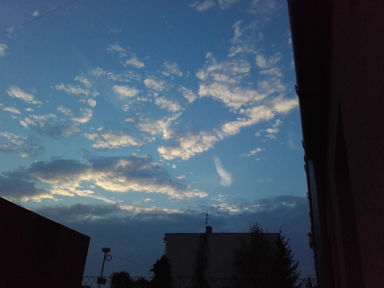 Většinou oblačno. Beze srážek. Vítr 1,8 m/s SSV. Vlhkost 75%. Tlak 1020,3hPa. Max T 19,3°C