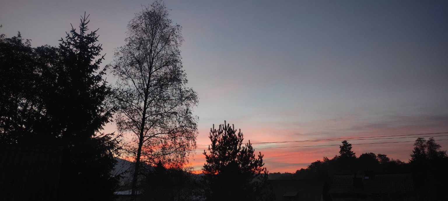 1,5°C, Polojasno až skoro jasno. Namraza na zahradě.