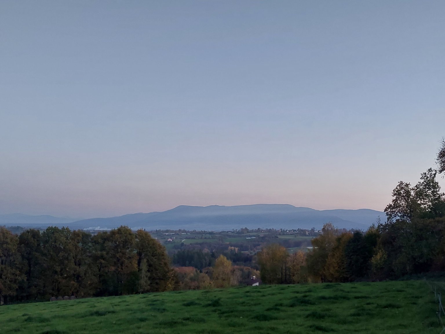 Skoro jasno, vysoká oblačnost. Většinou bezvětří. Vlhkost 89%. Tlak 1020,7hPa. Max T 12,9°C