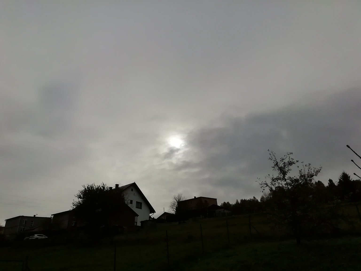 Zataženo. Většinou bezvětří. Vlhkost 93%. Tlak 1016,5hPa. Min T dnes 5,6°C