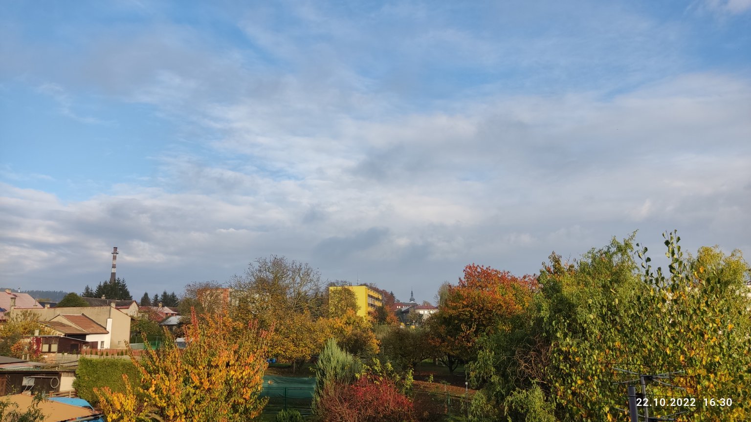 Jasno, velmi teplo. Vítr 1 m/s JZ. Vlhkost 74%