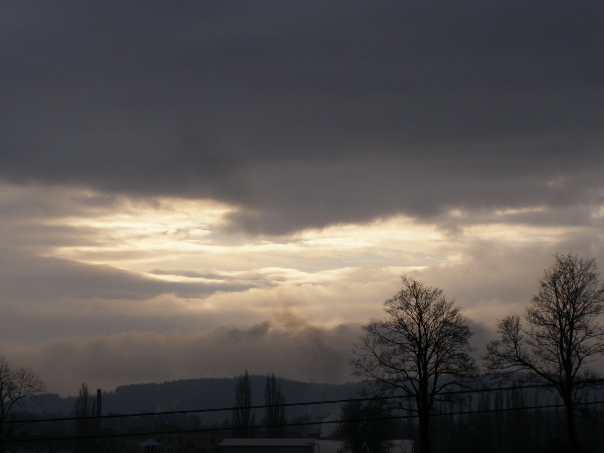 Začalo slabě pršet,fouká slabý vítr,tlak 1009hPa,vlhkost 87%.Foto 10.50hod