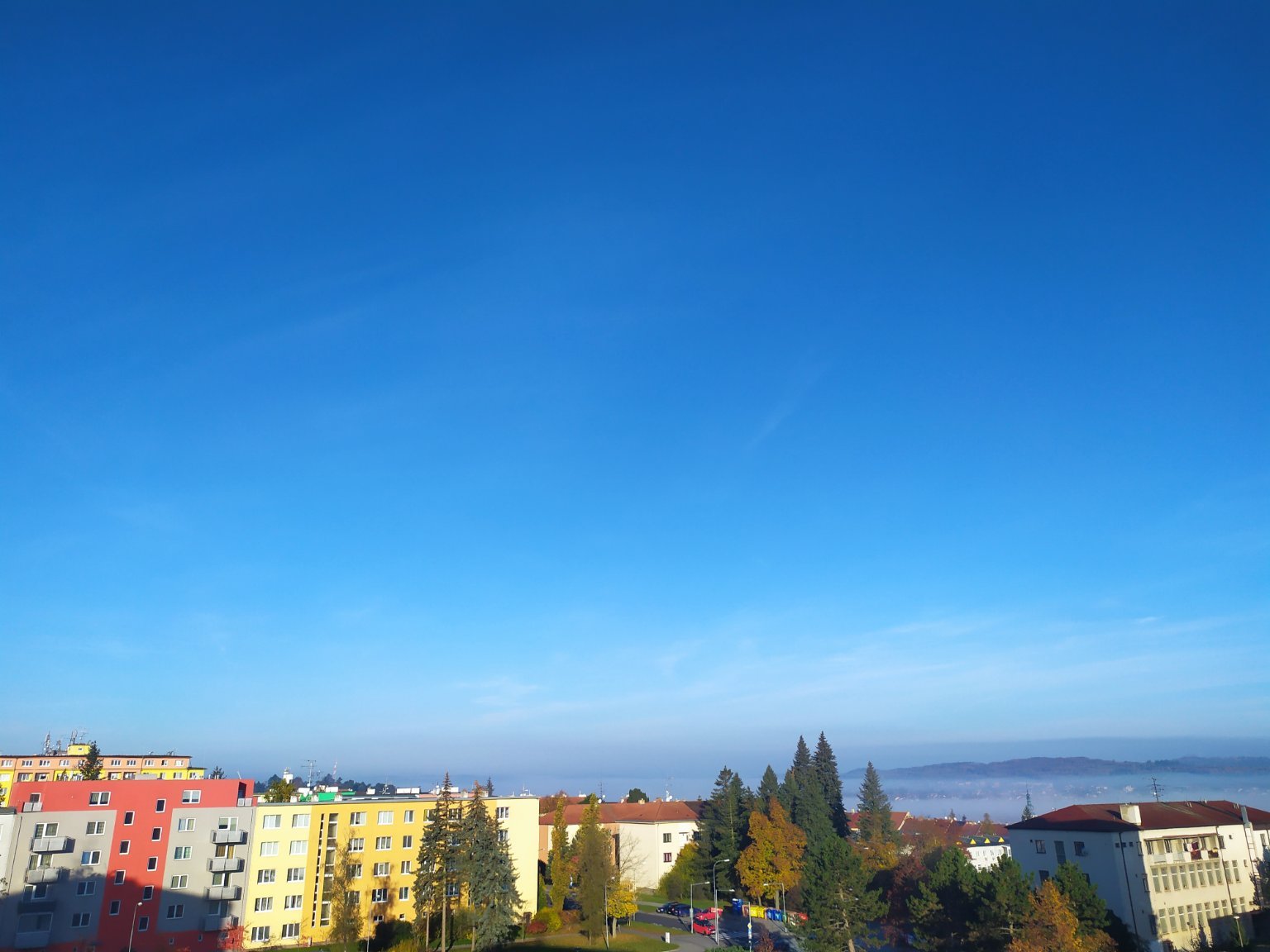11,2°C, Skoro jasno až jasno. Mlha ve Slovenských Beskydech.