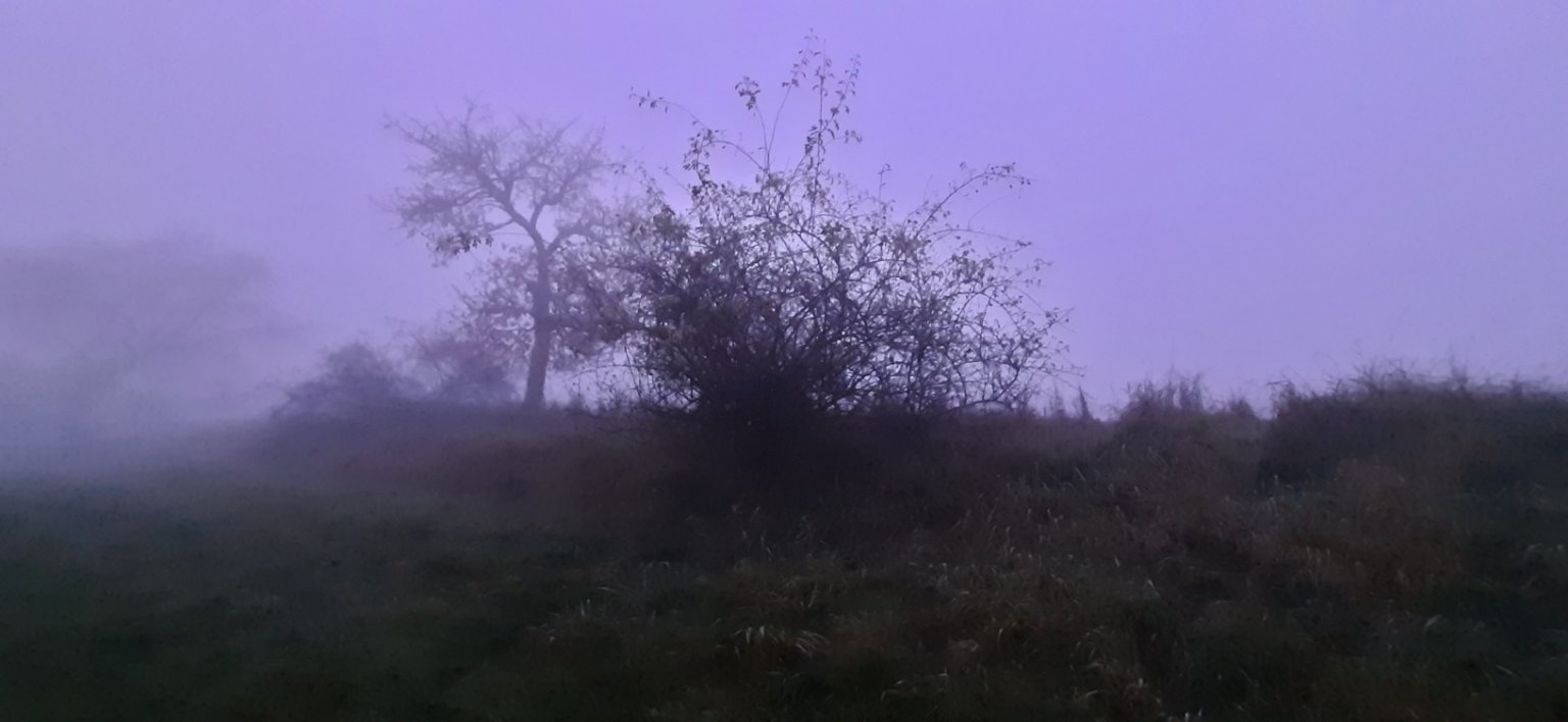 Večerní příroda. Mokro jako kdyby bylo po dešti.