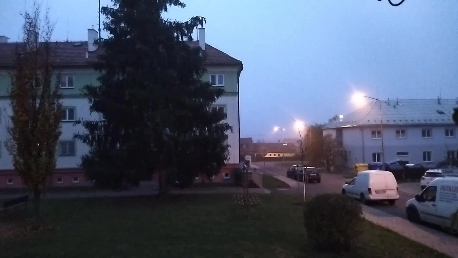 Klidno, tlak 1023 hPa, vlhkost 96%