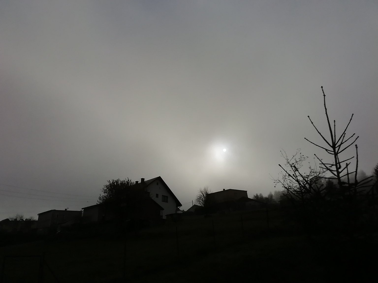 Skoro jasno, rozpad NO. Vítr 0,7 m/s JJZ. Vlhkost 98%. Tlak 1023,1hPa