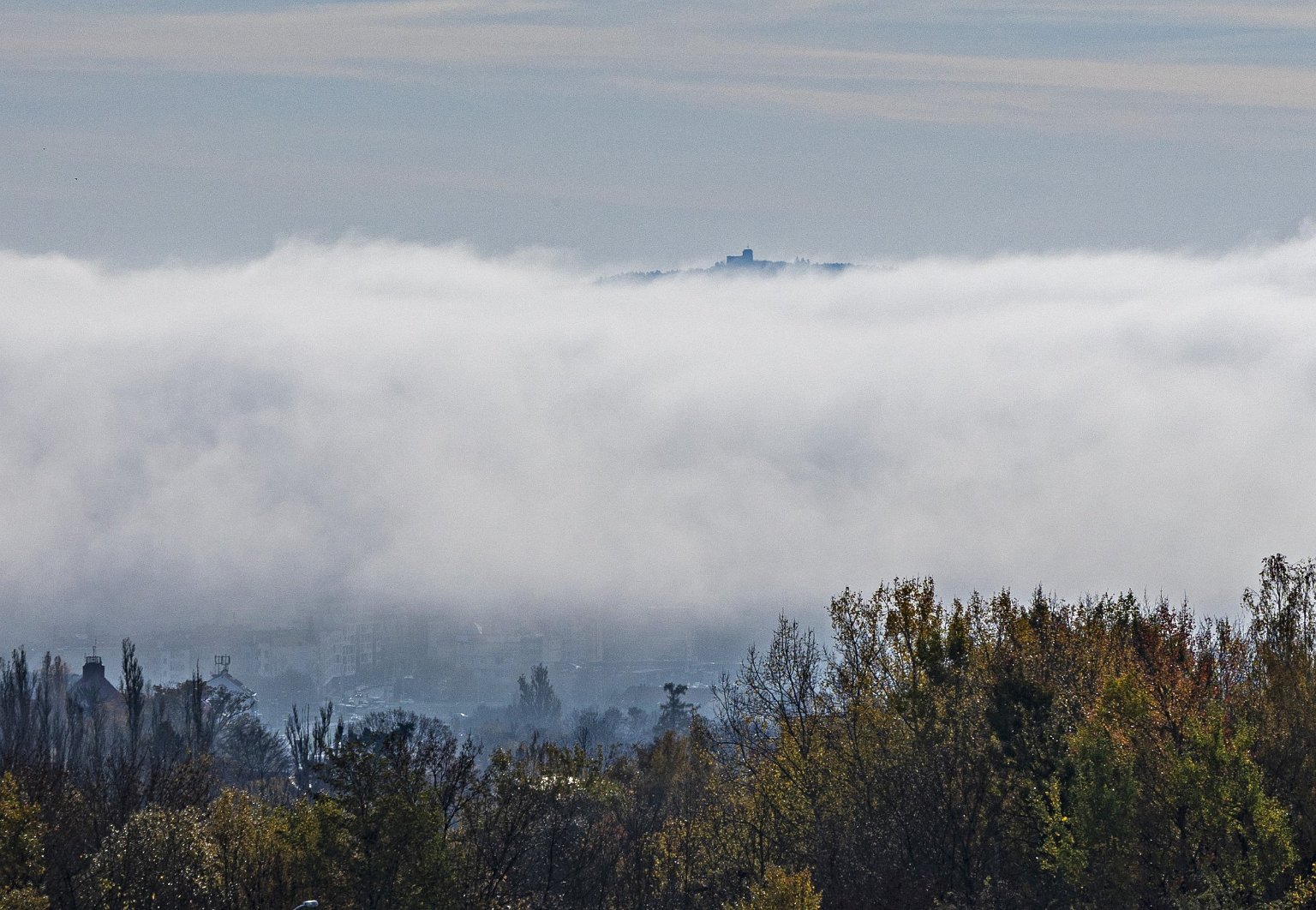 Z dopolední mlhy nad městem hezky vyčnívala Radyně