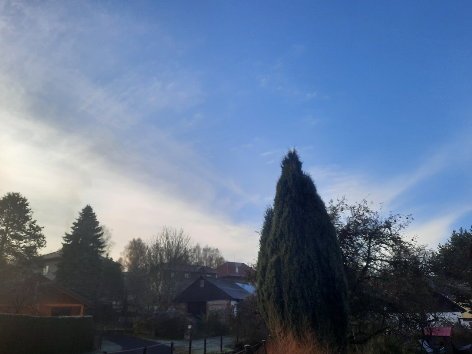 Hezky, šedivák byl dneska. Tlak 1020 hPa, vítr S.