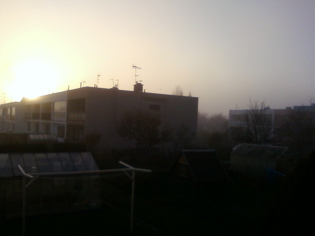 6,5°C, Velmi slaba až zanedbatelna mlha. Na chviličku byla vidět i obloha, ale opět se zatáhlo.