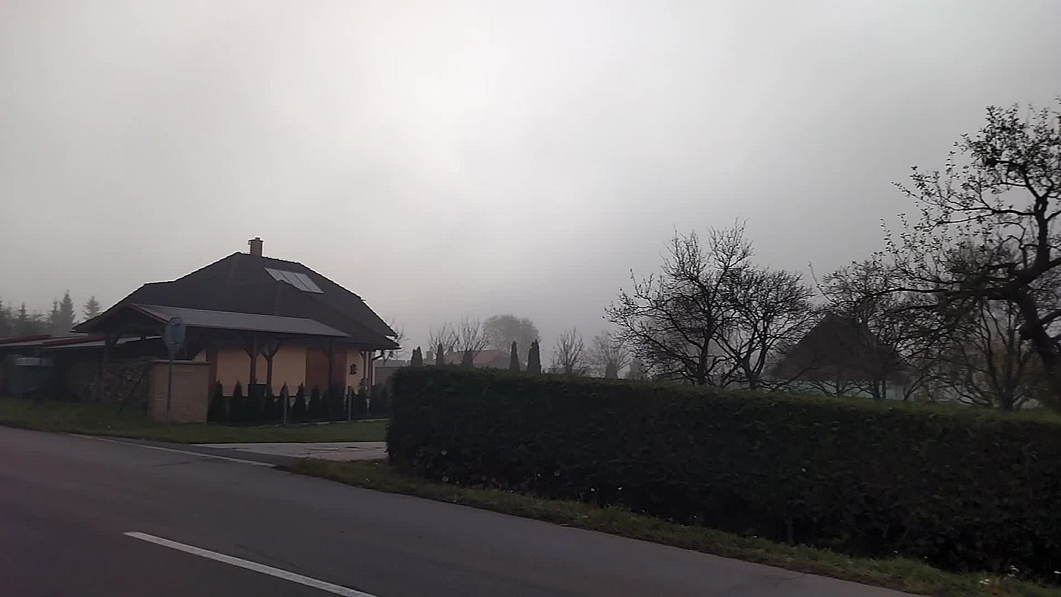 Mlhavo, tlak 1020,4 hPa, klidno.