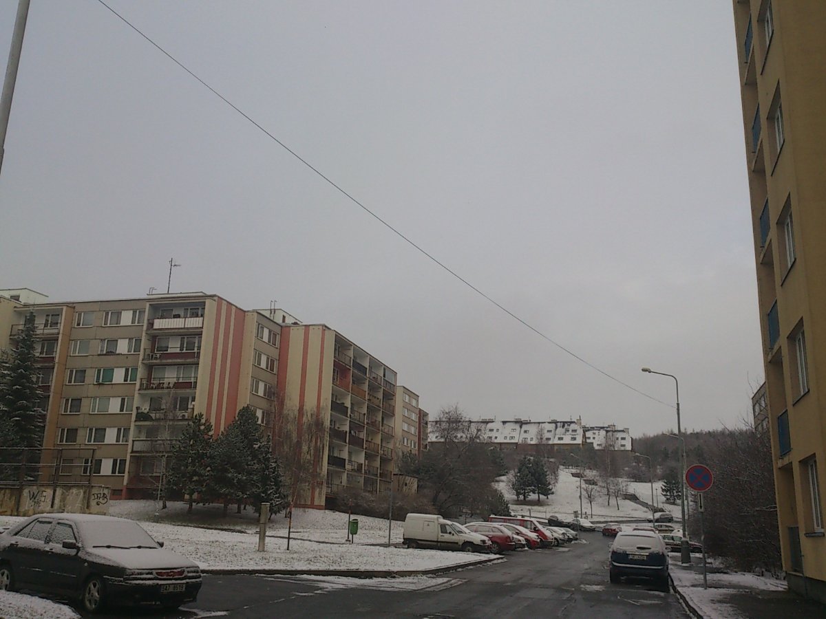 Rano jeste slabe snezilo a tet je zatazeno a opcas spadne vlocka a je bezvetri. Snehu je tak do 0,5 cm a nahline se snih stale nedrzi jeste nestacila promrznout.
