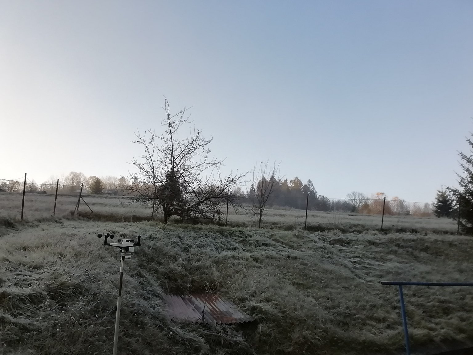 V noci při jasné obloze teplota klesla až na -2 °C, nyní hustá mlha.
