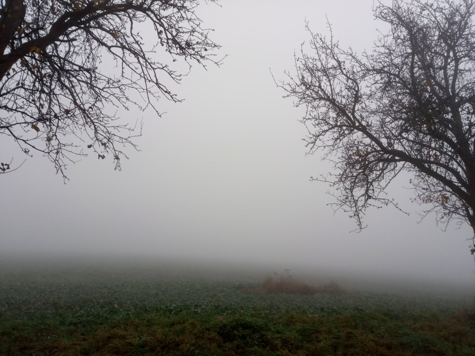 Mlha s dohledností cca 100 m, tlak 1018,5 hPa, slabý JV vítr.