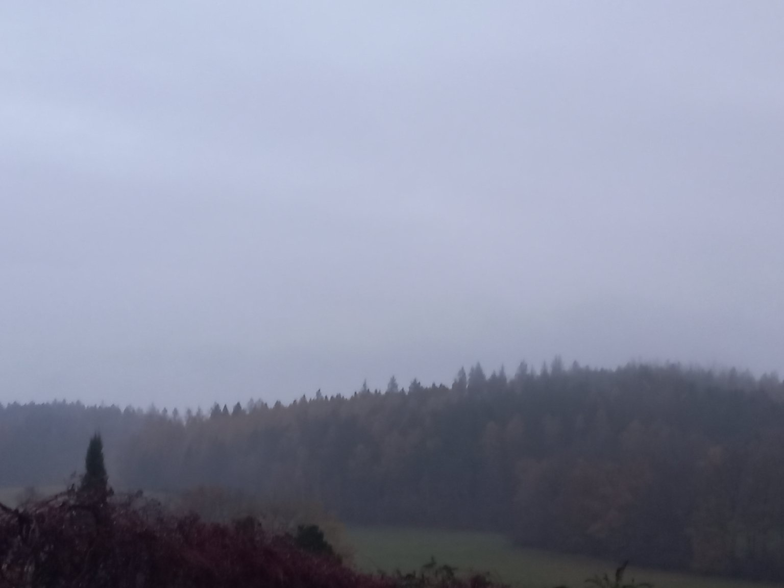 Zamračené, mrholenie, hmla