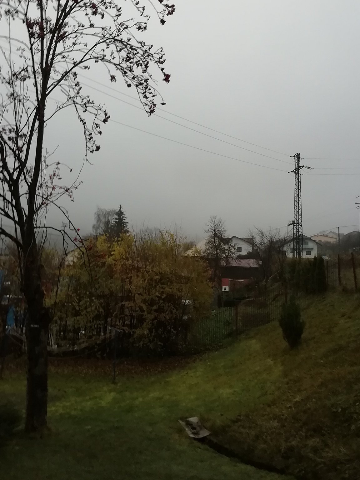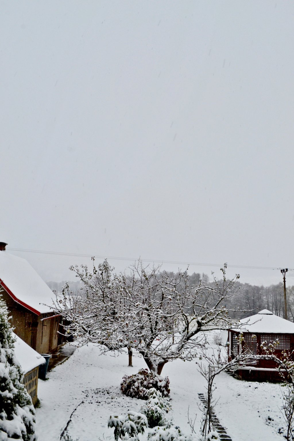 0,3°C, Slabé až mírne sněženi, Sníh: poprašek. Začalo sněžit a hned se to začina držet.