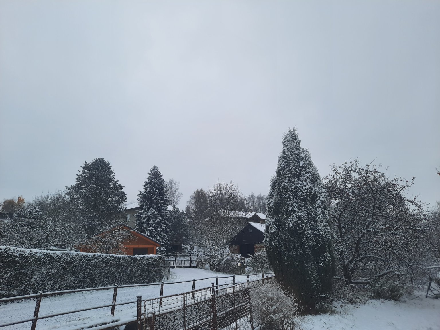 Krásné mrazivé ráno, sněhu kolem centimetru