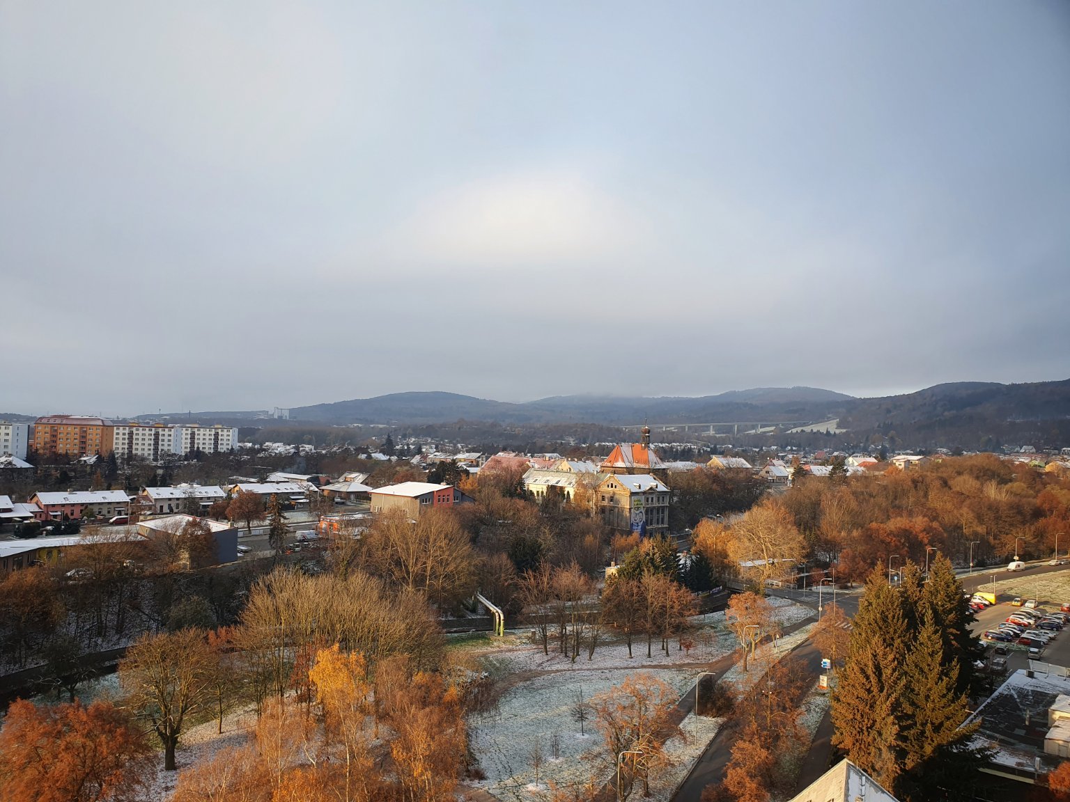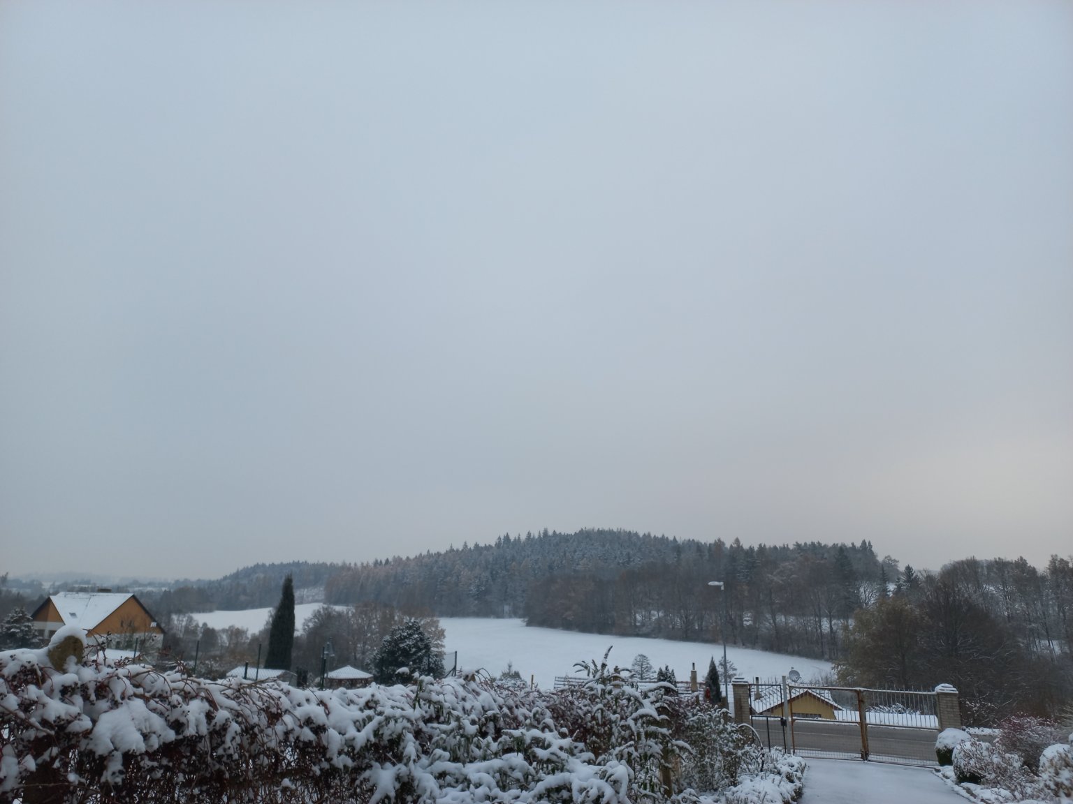 Teplota během neci klesla až k -6°C, pak se kvůli oboačnosti oteplilo. Námraza venku vytvořila bílou krásu