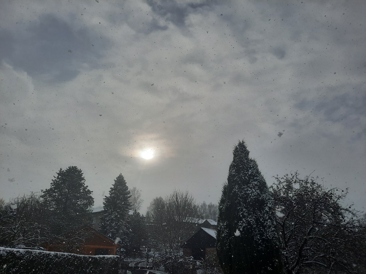 0,8°C, Zataženo, Sníh: nesouvislý. Teplota stoupla nad nulu a sníh okamžitě zmoknul... Už začina tát... Ale využil jsem toho.