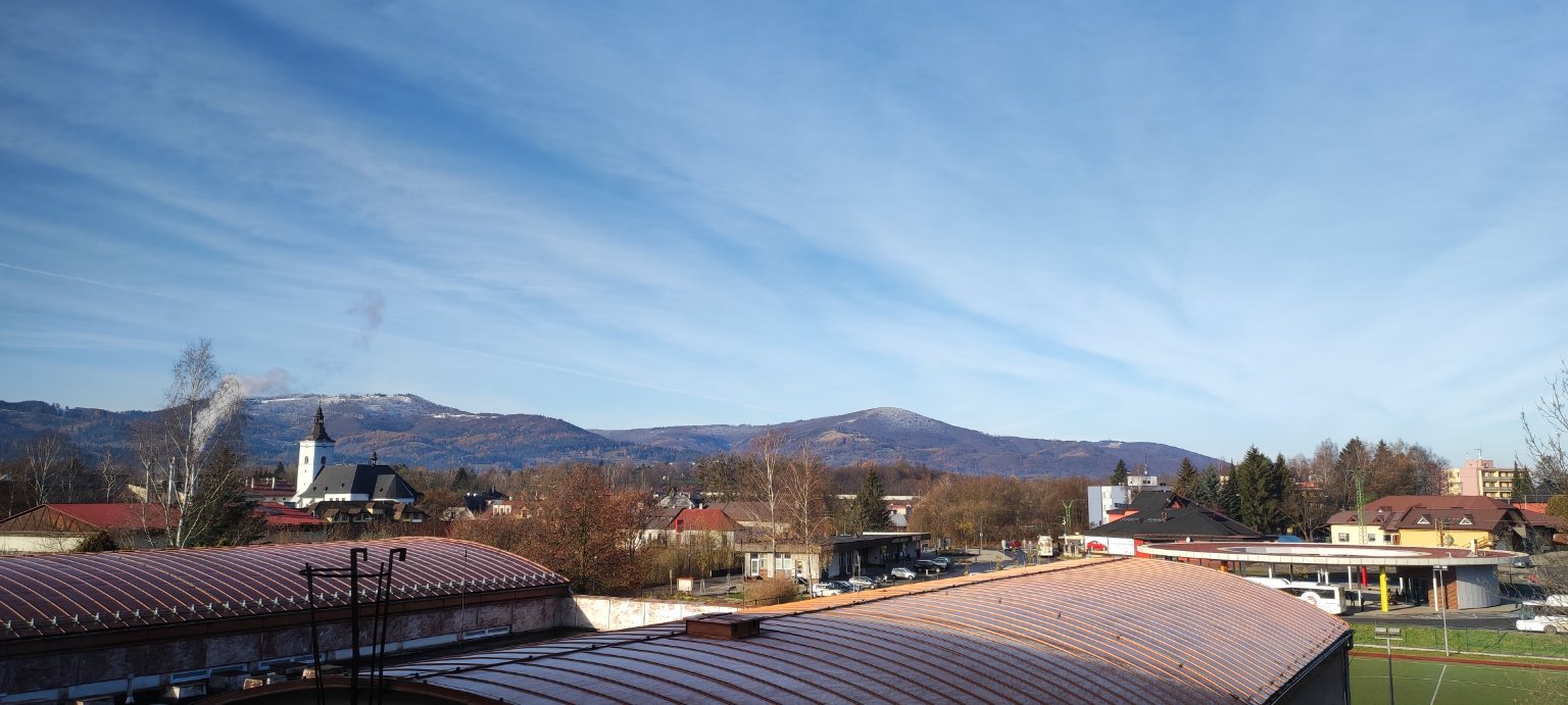 Hustě mrholí, tlak 1004,6 hPa, JV vítr 2-4 m/s.