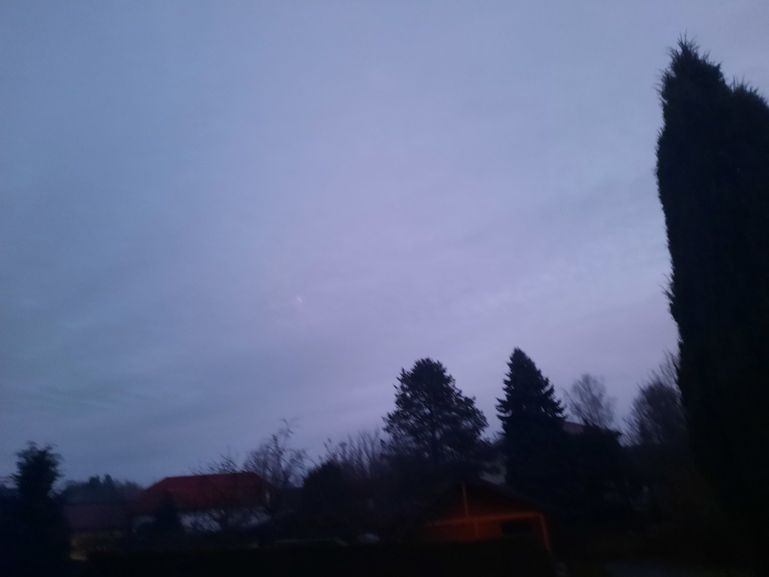 -0,5°C, Slabé až velmi slabé sněženi, Sníh: nesouvislý. Námraza na travě.