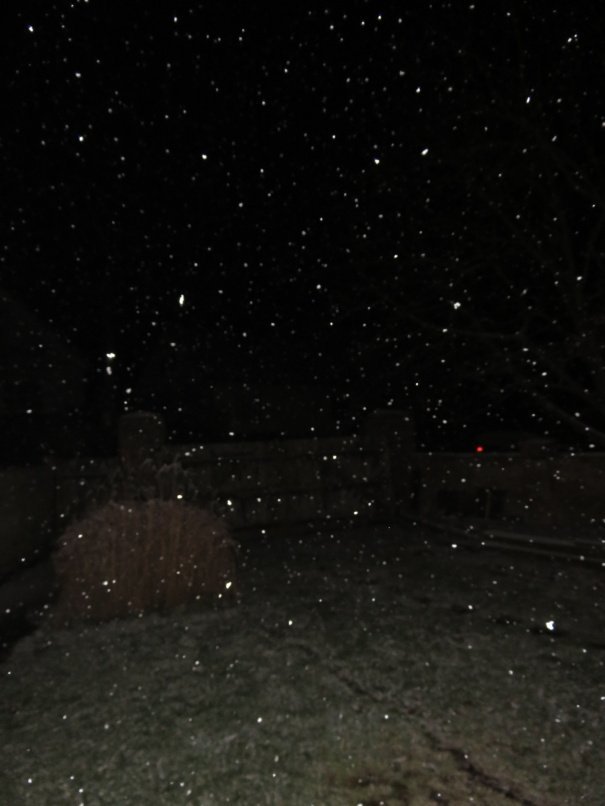 Zataženo, slabé sněžení, asi hodinku. Začíná se tvořit slabý poprašek. Vítr 1,1 m/s SSV. Vlhkost 95%. Max T dnes 1,6°C
