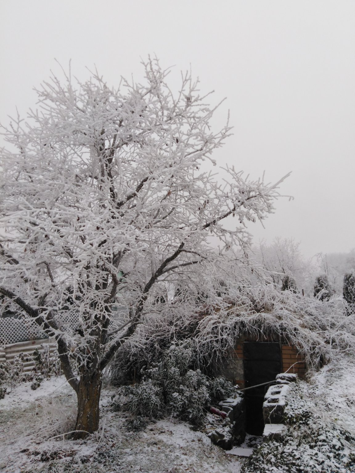 Silná mlha, mží či mrholí, tlak 1022,6 hPa (slabý pokles), JV vítr 3-5 m/s.