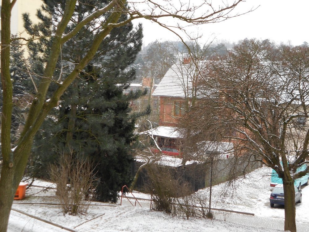 Drobně poletují vločky,, Přes noc klesla teplota na -11.5°C /Foto v 10:40h