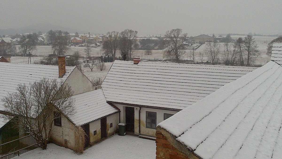 Drobně poletují vločky,, Přes noc klesla teplota na -11.5°C /Foto v 10:42h