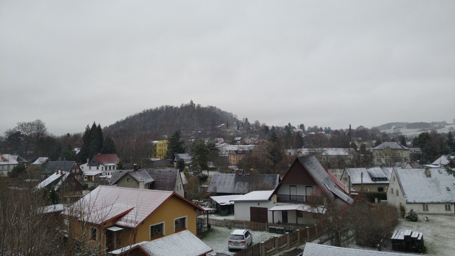 Je zataženo a propadává sníh. Vítr vane slabý.