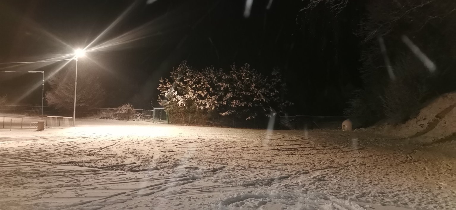 -0,2°C, Zanedbatelné až velmi slabé sněženi, Sníh: 7 cm. Snih stále slehava, ale už začalo drobně sněžit.