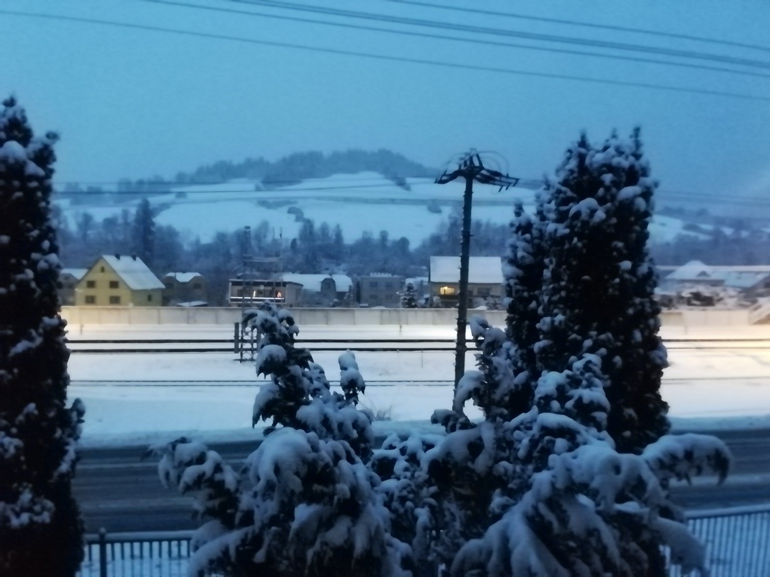 Mírný JJV vítr, slabé sněžení, tlak 1005 hPa, vlhkost 93%