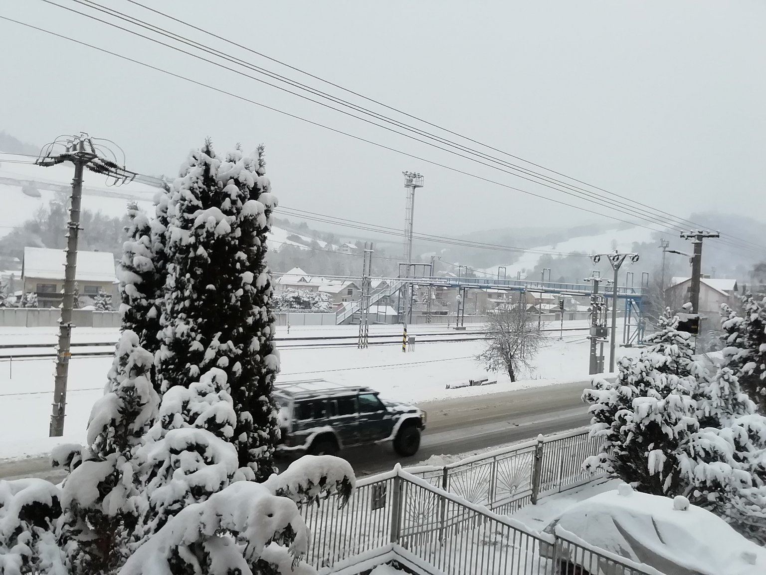 Aktuálně převažuje většinou skoro zataženo a slabé drobné sněžení a fouká většinou slabý občas až mírný chladný vítr, zatím jen málo sněhu to i "u muzea jsou 4 cm" ale žene se silnější sněžení