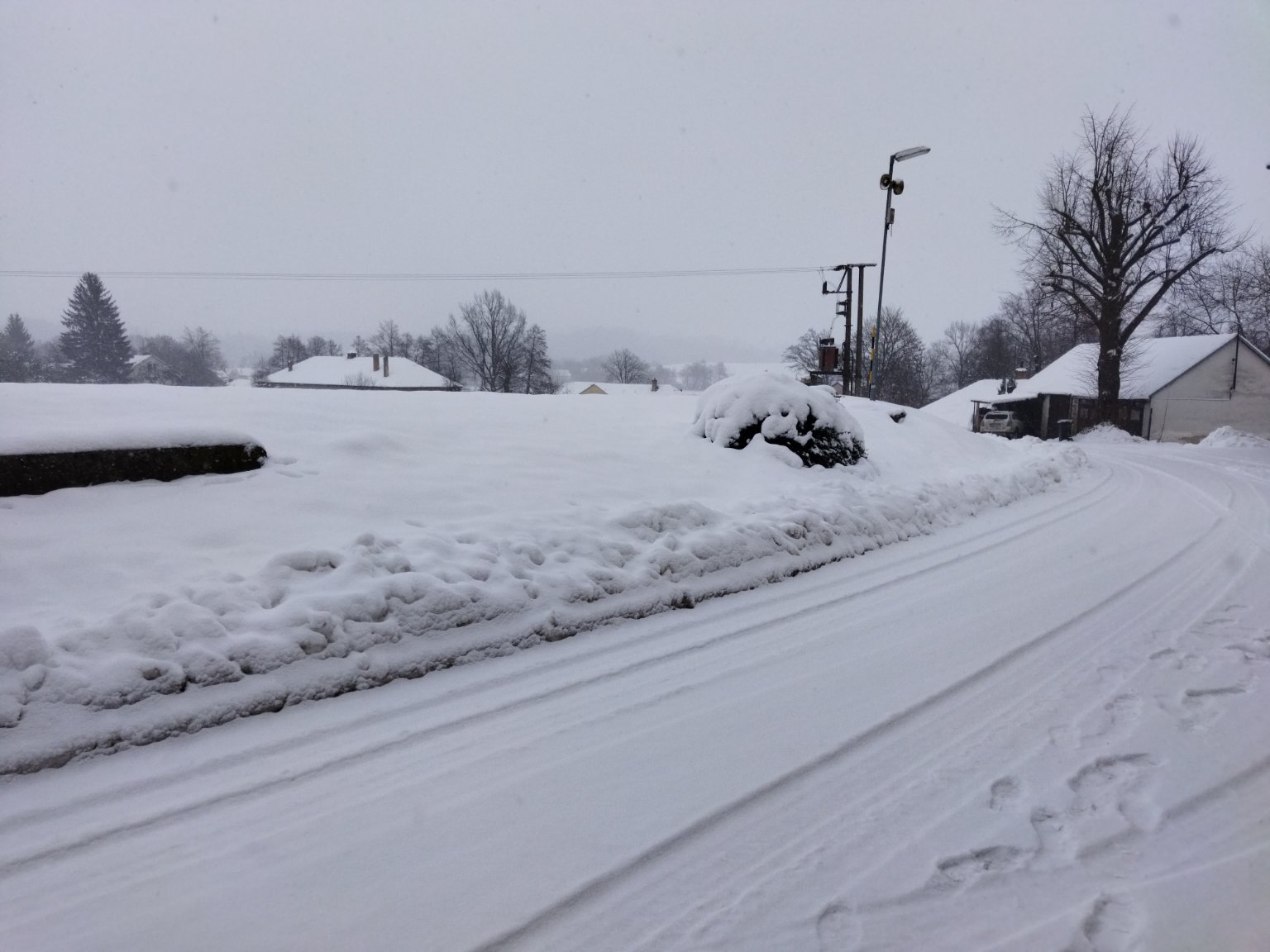 Sněhové přeháňky, bezvětří, tlak 1005 hPa, vlhkost vzduchu 95%