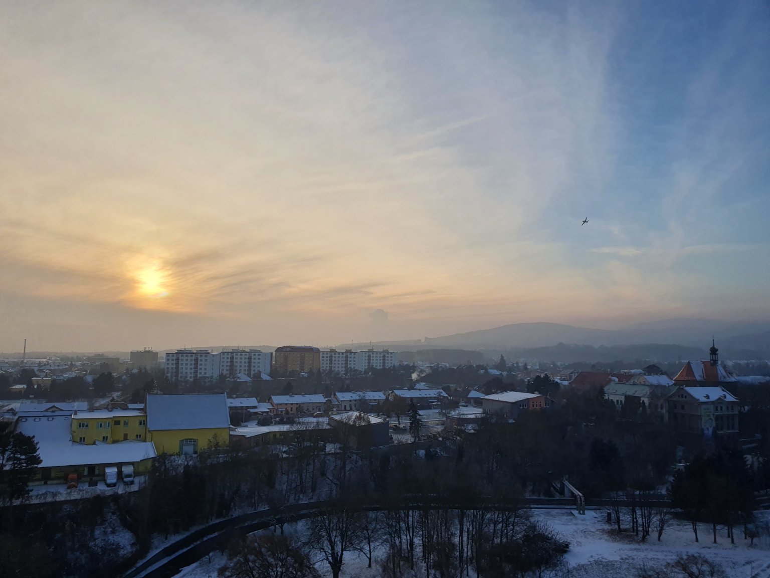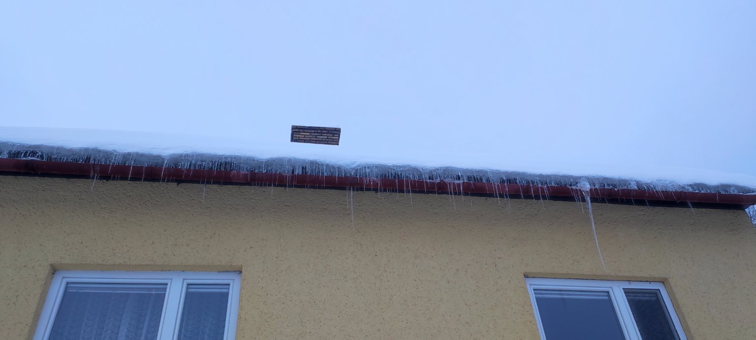 -1,1°C, Zataženo, Sníh: 26,2 cm. Na druhé straně střechy ohromné množstvi rampouchu!
