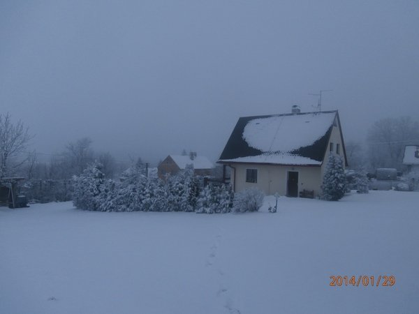 Slabý vítr,drobně sněží,tlak 1004hPa