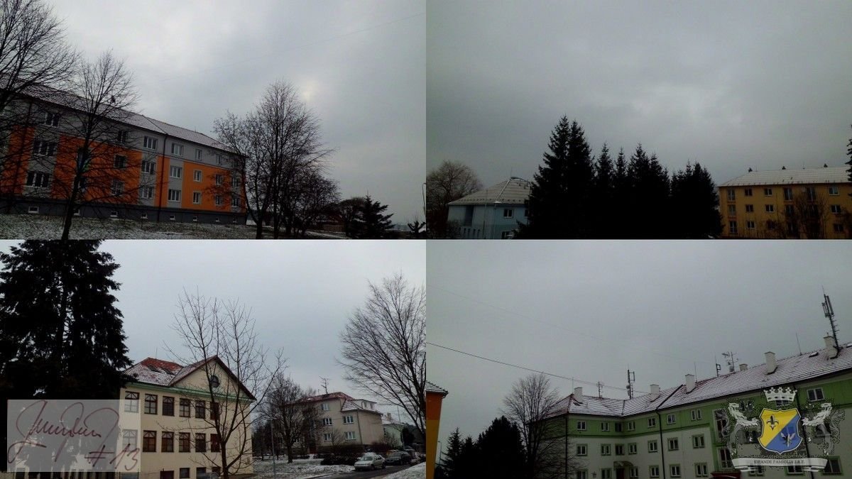 Odpoledne lehce sněžilo, tlak 1011.1 hPa.