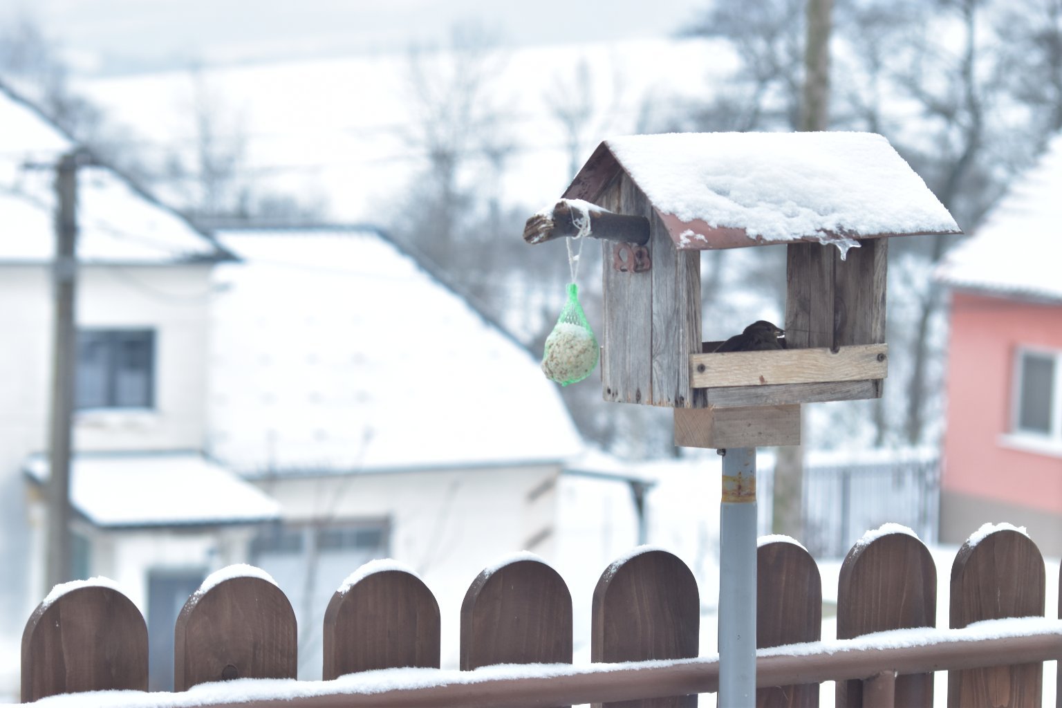 -5,5°C, Slabé až velmi slabé sněženi, Sníh: 33,4 cm. Pohled z okna.