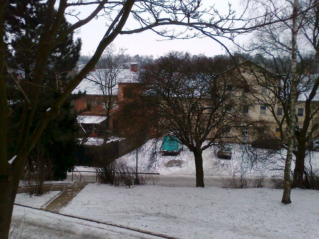 Silnější nárazový vítr za vesnicí se začínají tvořit menší sněhové jazyky