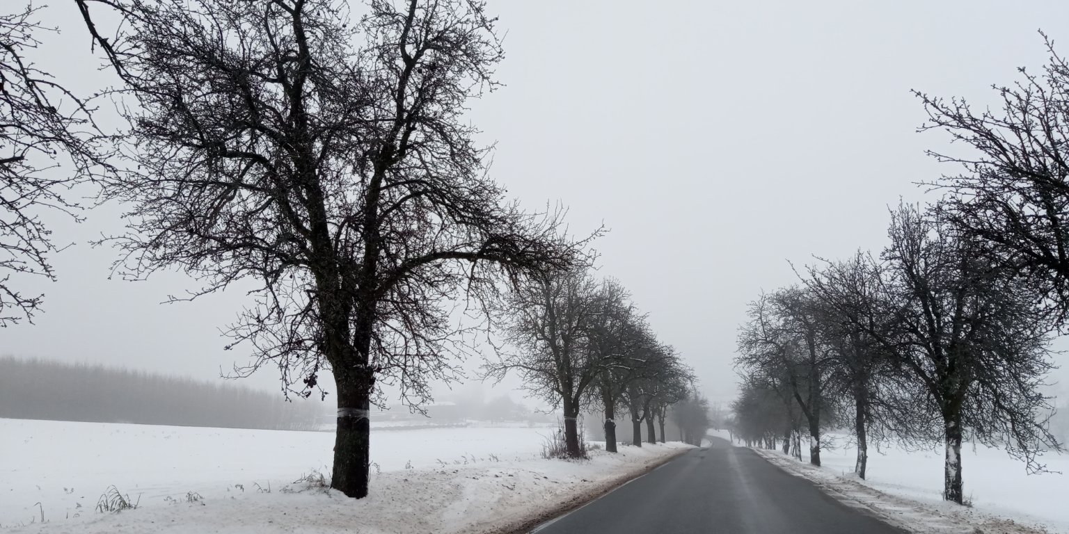 slabý vítr, tlak 1029 hPa, vlhkost 96%, dohlednost 500m
