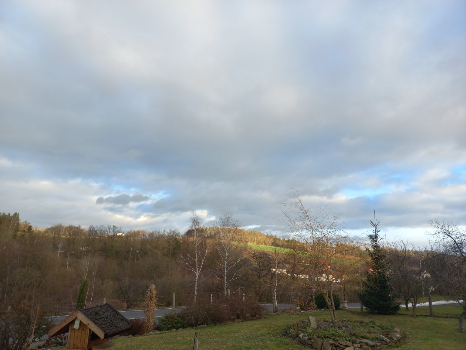 Vlhkost 56%, vánek. Oblačnosti ubývá. Venku je skoro na tričko. Sníh se drží jen nahrnutý na stinných místech. Takže šťastné a blátivé!
