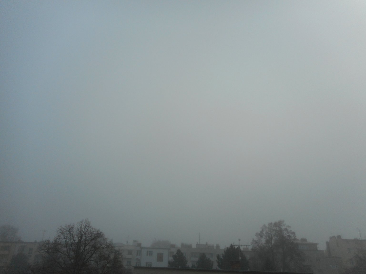 0,9°C, Skoro jasno až jasno, Sníh: 0 cm. Všechen sníh na kopci roztál... Stratus přichazejici ze Slovenska.