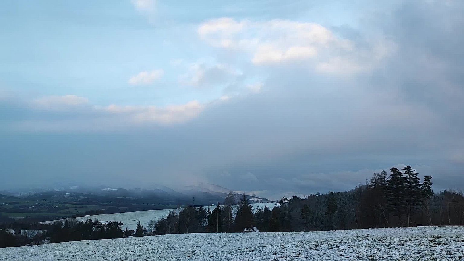 1,1°C, Zanedbatelné až velmi slabé sněženi, Sníh: poprašek. Sníh (spiše břečka) se drži i na cestě, no... Na kolobajdě se to dá, ale radši jděte pěšky...