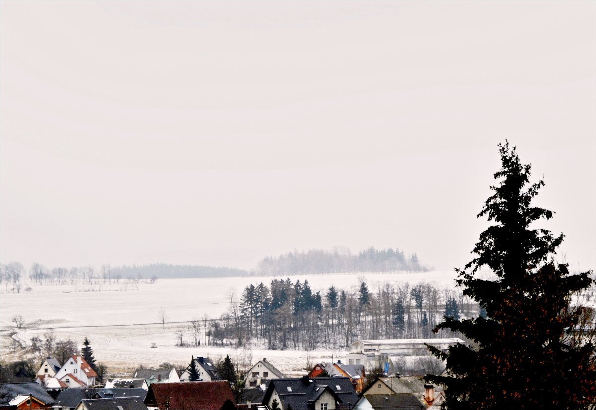 foto z 2014 02 02 v 11:44 pohled od rybníka na Třibřichy - jen ta zelená barva uklidňuje - teplota v té době byla jen 2°, nyní stoupla.