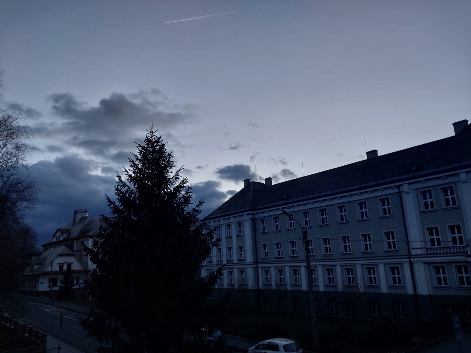 Tlak 1028,8 hPa (slabý vzestup), slabý Z vítr.