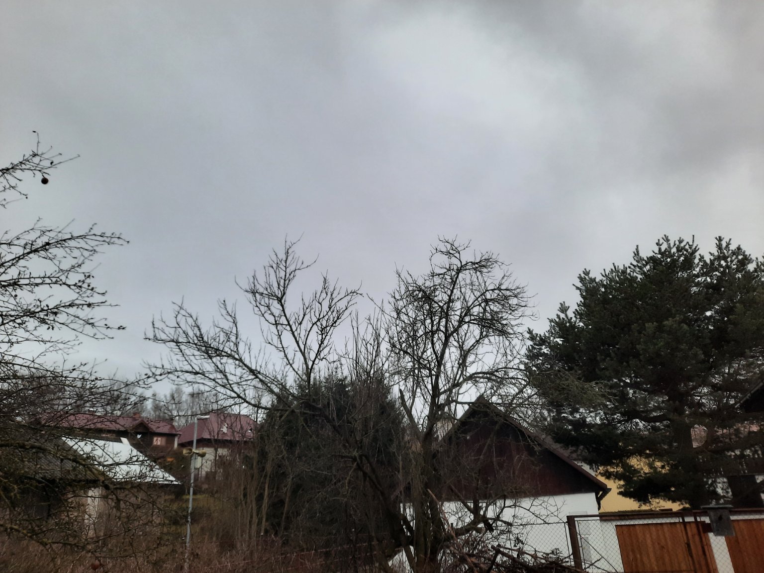 5,9°C, Zataženo, Sníh: 0 cm. Bliži se dešť. Vítr zesiluje, ale nijak moc silny není...