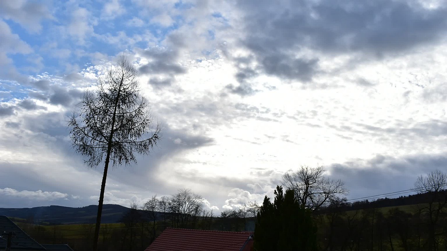 Hezké duhy. Vítr neustává SZ 13,3 km/hod.