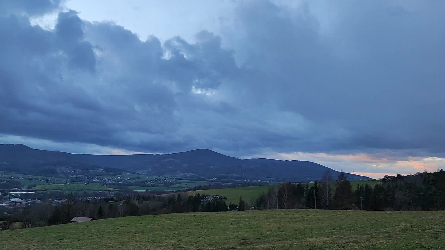 Tlak 1017,3 hPa (slabý vzestup), ZSZ vítr 4-7 m/s.